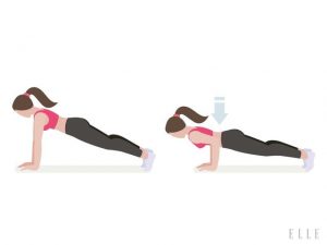 - تأكدى من إبقاء جسَمَكِ في خط مستقيم وأنزليه ببطء بطريقة مضبوطة ثم ادفعيه مرة أخرى.