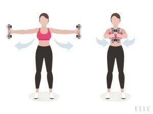 - افتحى ذراعيكِ على ارتفاع الكتفين تقريبًا والأوزان في كل يد.